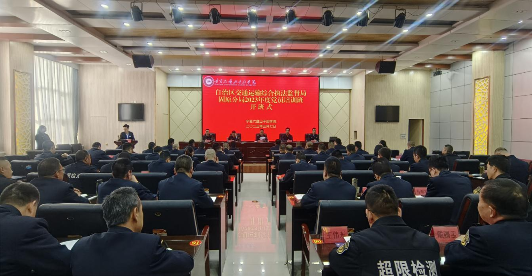 在开班式上,自治区交通运输综合执法监督局固原分局党委书记、局长王通作动员讲话。宁夏六盘山干部学院副院长马东升致辞并为培训班授班旗。