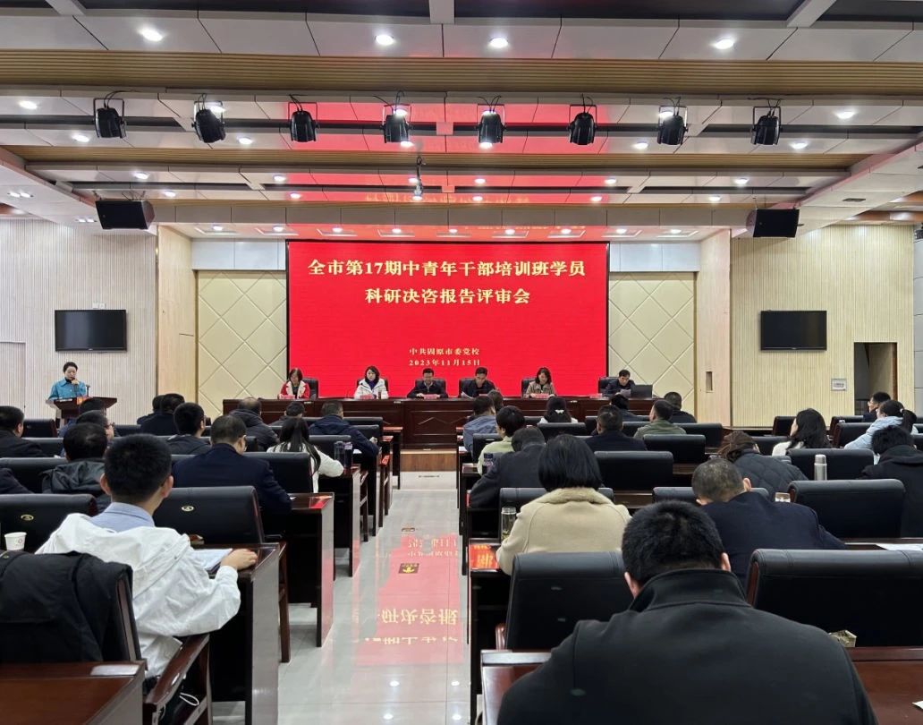 11月15日上午,中共固原市委党校(行政学院)召开全市第17期中青年干部培训班学员科研决咨报告评审会。市委政研室副主任程新伟,校(院)副校(院)长马东升、王平花,科研与决策咨询部主任刘杰,教授王秀琴、陈燕担任评委,第17期中青班学员及全体专兼职教师参会。