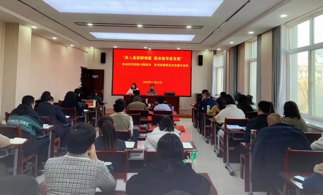 今年以来,结合主题教育的开展,自治区党委党校不断创新对市县党校教学业务指导方式,把为基层党校办事解难题作为推动全区市县党校高质量发展的着力点。本次活动是今年创新项目“下送上通”活动的最后一站,以“三个一”为载体,通过“送一堂示范课”、“送一场决咨讲座”、“进行一场答疑解惑座谈”的方式,“一对一、点对点”对基层党校教师进行教学与科研决咨方面的指导及课程开发、学员管理等存在问题的答疑,助力市、县党校在高质量发展中能实现新突破。