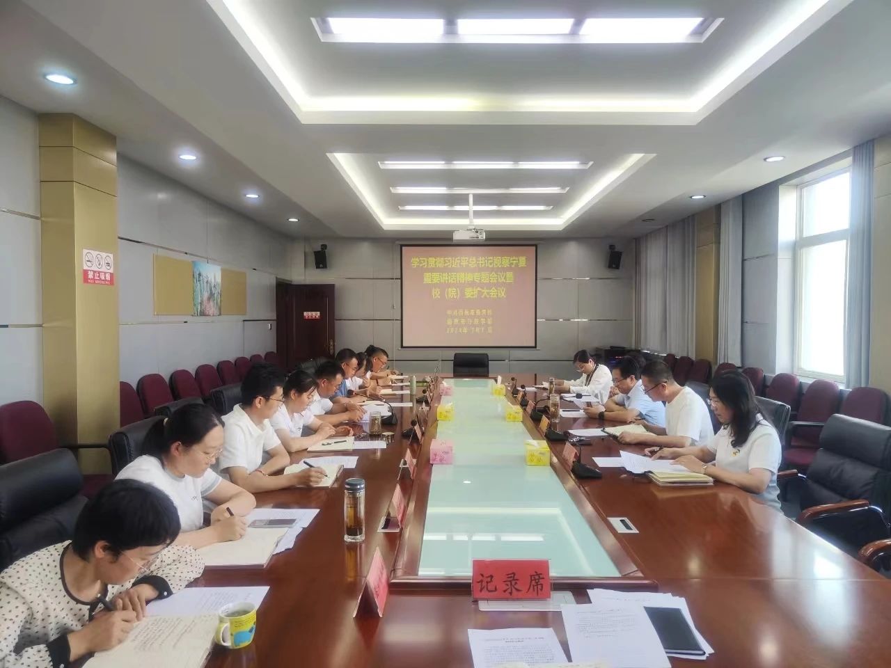 7月1日下午,宁夏六盘山干部学院 中共固原市委党校召开校(院)委(扩大)会议,专题传达学习习近平总书记考察宁夏重要讲话精神,对校(院)学习宣传贯彻工作进行部署安排。会议由常务副校(院)长徐万廷主持,校(院)委委员及各部室负责人参加会议。