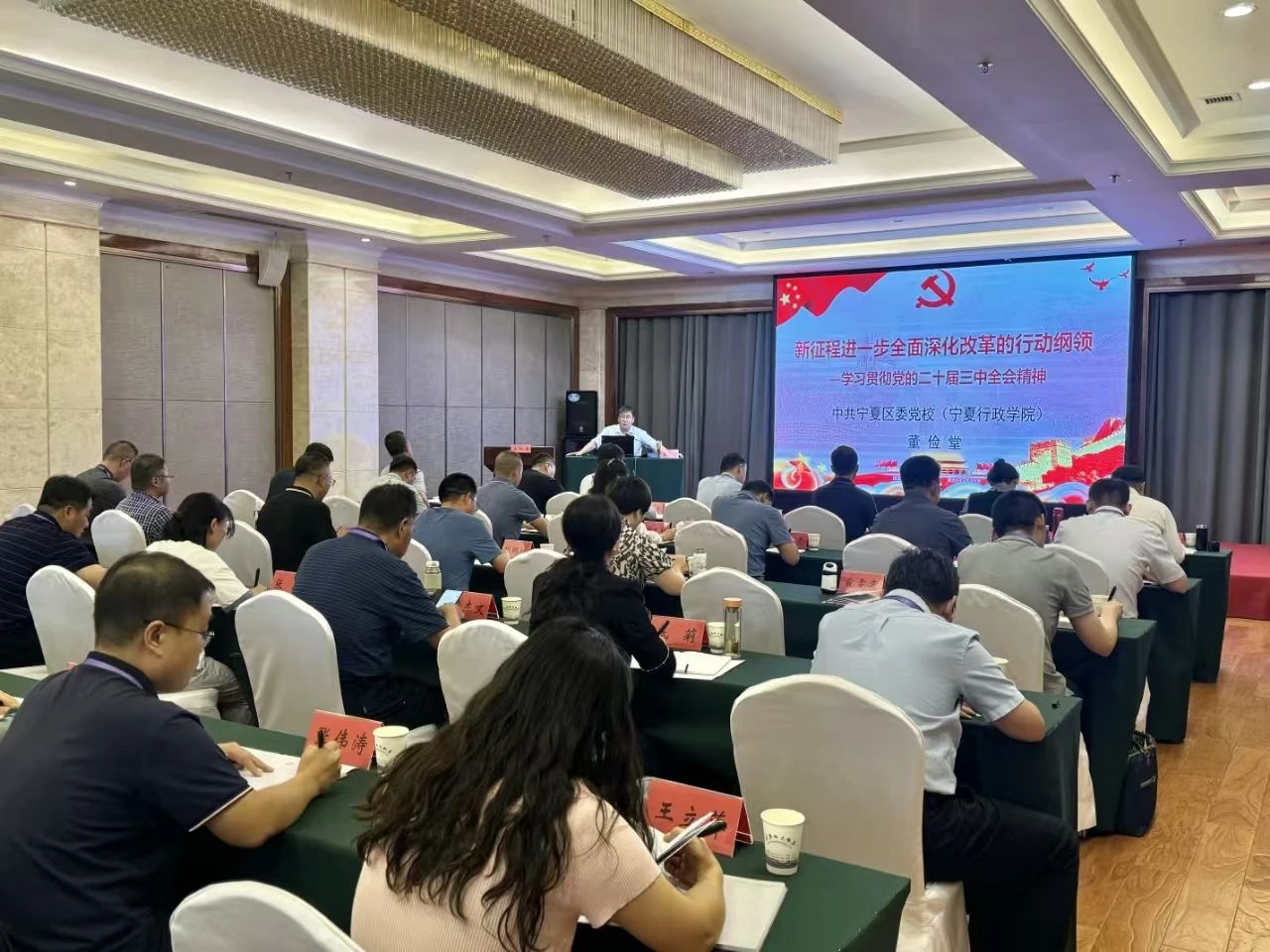 在全区上下深入学习贯彻习近平总书记在听取自治区党委和政府工作汇报时的重要讲话精神和党的二十届三中全会精神之际,为全面提升纪检监察干部党性修养,8月12日,全区纪检监察干部党性修养专题培训班在宁夏六盘山干部学院开班,自治区纪委监委组织部部长褚延涛出席开班式并作动员讲话,宁夏六盘山干部学院副院长马东升致辞并为培训班授班旗。委机关、五市纪委监委、自治区党委巡视机构、自治区纪委监委派驻(派出)机构、区属国有企业和区管高校纪检监察干部共48人参加培训。