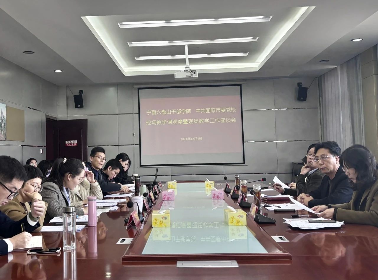 为认真总结现场教学经验做法、分析存在问题,全面提高现场教学水平,12月4日,宁夏六盘山干部学院 中共固原市委党校召开现场教学课观摩暨现场教学座谈会。常务副校(院)长徐万廷主持,副校(院)长马东升、王平花,相关部室和各教研组负责人、参与现场教学课开发和讲授的教师参加会议。