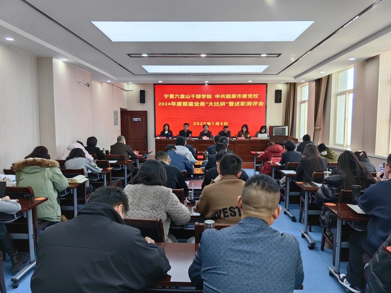 1月6日,宁夏六盘山干部学院 中共固原市委党校召开2024年度部室业务“大比拼”暨述职测评会,常务副校(院)长徐万廷主持,校(院)领导班子成员和全体干部职工参加。