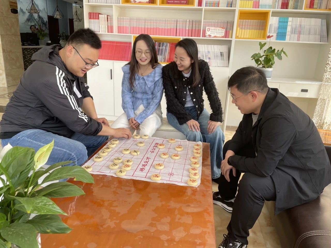 象棋、跳棋比赛项目在一片安静的氛围中进行,学员们围站在选手的桌旁,专注地观察着每个棋的走向,分析着全局势态。学员刘烨在比赛中表现沉稳,她的每一步棋都显得深思熟虑,兵来卒往,见招拆招,在场观看的学员连连称赞。学员们不仅在比赛中相互切磋,还在赛后互相分享棋艺心得,讨论战术布局,场面温馨而热烈。