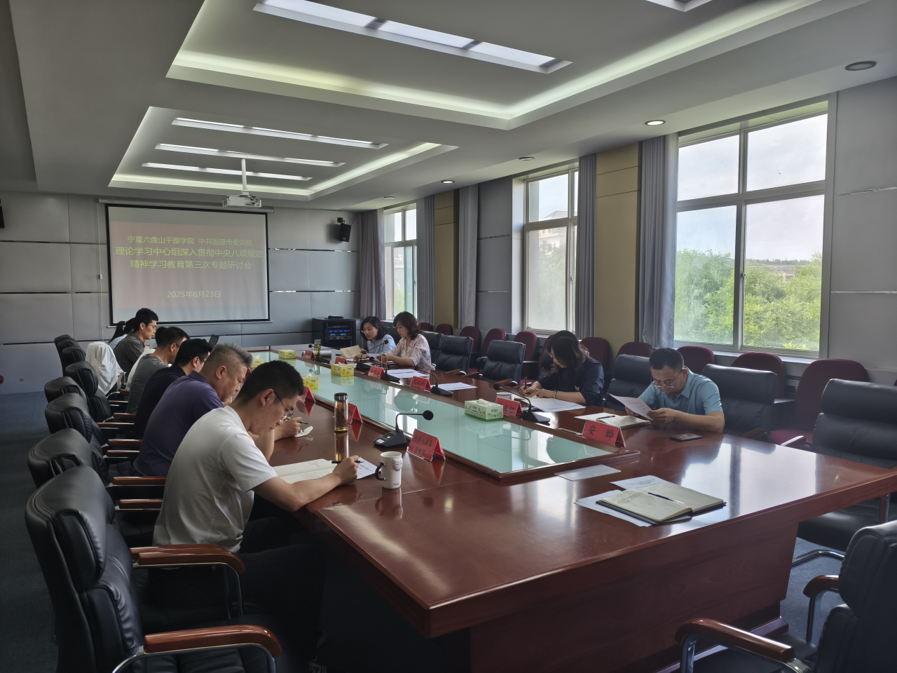 校(院)理论学习中心组发挥“头雁”领学作用,深入学习习近平总书记关于加强党的作风建设的重要论述和考察宁夏重要讲话精神,分专题开展深入贯彻中央八项规定精神学习教育研讨交流,深刻剖析违反中央八项规定精神典型案例,进一步强化纪律意识和规矩意识,推动学习教育走深走实。