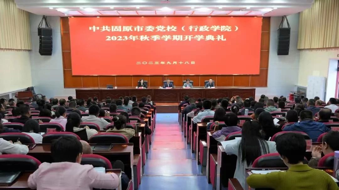 9月18日上午,中共固原市委党校(行政学院)举行2023年秋季学期开学典礼。市委常委、组织部部长、宁夏六盘山干部学院院长、市委党校(行政学院)校(院)长杨继宏出席并讲话,宁夏六盘山干部学院常务副院长、市委党校(行政学院)常务副校(院)长徐万廷主持,市委组织部副部长薛霞参加,市委党校(行政学院)副校(院)长雷宁作教学计划说明并宣读《干部教育培训学员管理规定》。