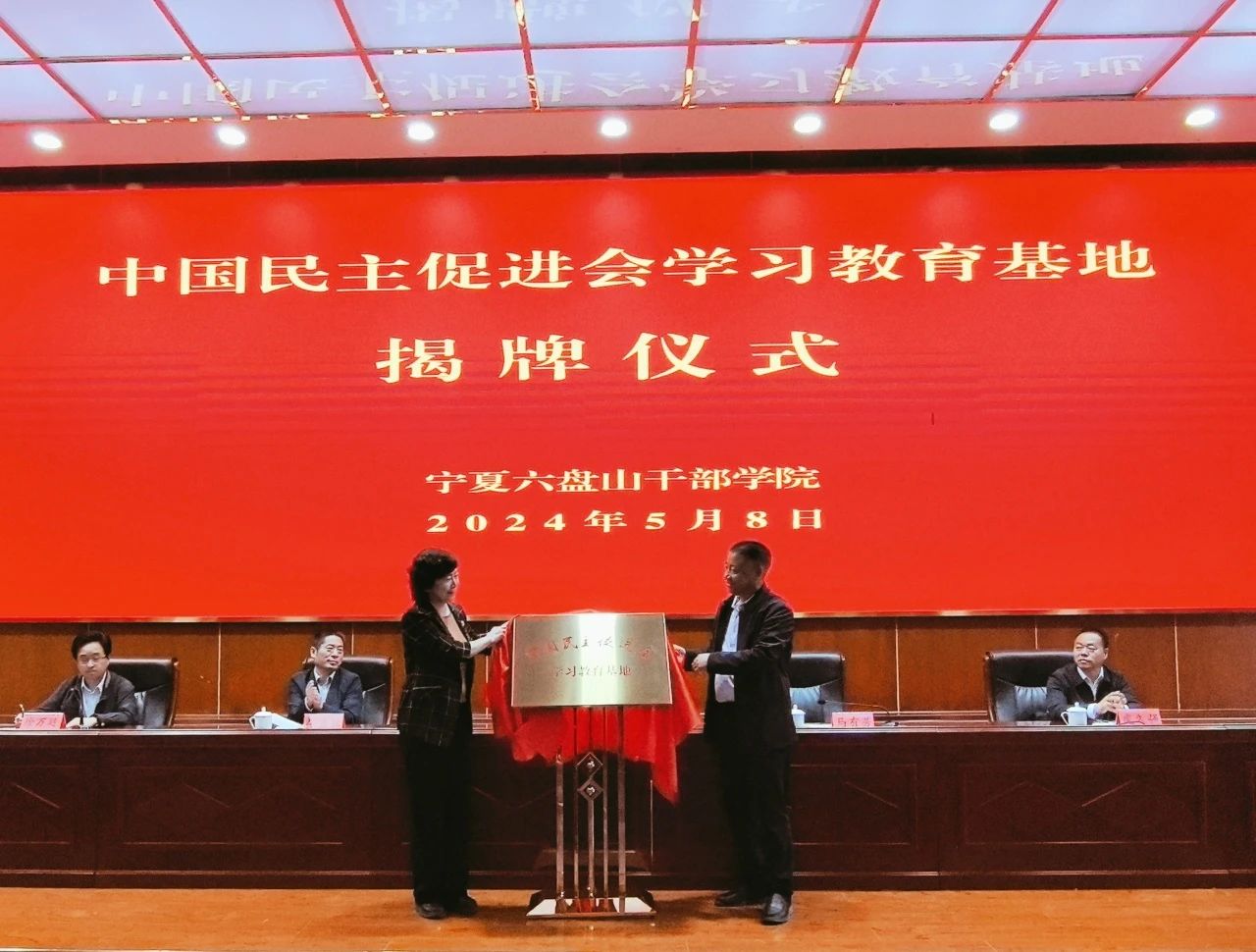 5月8日上午,中国民主促进会学习教育基地揭牌仪式在宁夏六盘山干部学院举行。全国政协委员、民进中央常委、自治区人大常委会委员、民进宁夏区委会主委王春秀,自治区政协副秘书长、民进宁夏区委会专职副主委张盛林,市人大常委会党组成员、副主任马有芳,市政协副主席、民进固原市委会主委虎久强出席揭牌仪式。宁夏六盘山干部学院常务副院长、固原市委党校(市行政学院)常务副校(院)长徐万廷主持仪式。民进宁夏区委会调研组人员、民进固原市委员会会员代表和宁夏六盘山干部学院全体干部职工参加了揭牌仪式。