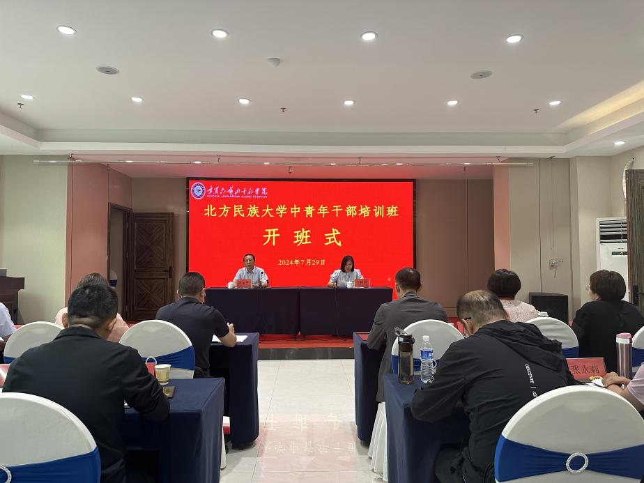 为深入学习贯彻习近平总书记在听取自治区党委和政府工作汇报时的重要讲话精神,全面加强年轻干部队伍建设,打造忠诚干净担当的高素质干部队伍,7月29日上午,北方民族大学中青年干部培训班(第二期)在宁夏六盘山干部学院开班。北方民族大学党委常委、组织部部长、党校常务副校长陈永平出席开班式,宁夏六盘山干部学院院务委员、机关党委专职副书记王桂贤致辞并为培训班授班旗。