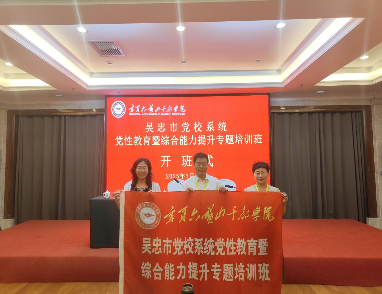 为深入贯彻落实新时代党的建设总要求,提升吴忠市党校系统干部队伍素质,7月14日上午,吴忠市党校系统党性教育暨综合能力提升专题培训班在宁夏六盘山干部学院开班。开班式上,吴忠市委党校(吴忠市行政学院)常务副校(院)长高建国作开班动员讲话,宁夏六盘山干部学院院务委员、三级调研员黄玉红致辞并授班旗,来自吴忠市党校系统的48位干部及老师参加了此次培训。