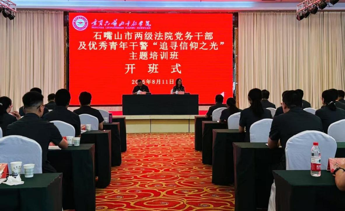 8月11日,石嘴山市两级法院党务干部及优秀青年干警“追寻信仰之光”主题培训班在宁夏六盘山干部学院开班。石嘴山市中级人民法院党组成员、政治处主任杨杰出席开班式并作动员讲话,宁夏六盘山干部学院院务委员、三级调研员黄玉红致辞并为培训班授班旗。来自石嘴山市法院系统的87名党务干部和优秀青年干警参加学习培训。