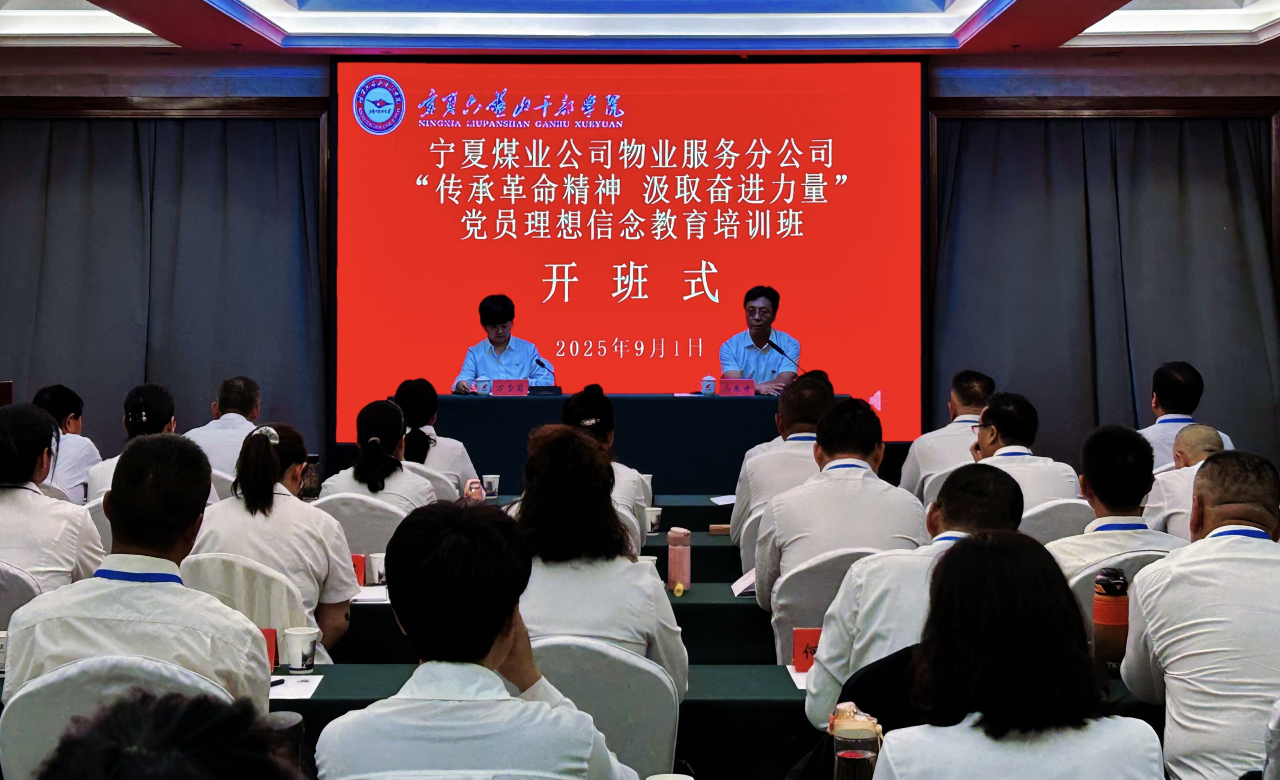 9月1日,宁夏煤业公司物业服务分公司“传承革命精神 汲取奋进力量”党员理想信念教育培训班在宁夏六盘山干部学院开班,物业服务分公司纪委书记万雪菊出席开班式并作开班动员讲话,宁夏六盘山干部学院副院长马东升致辞并授班旗。分公司党委班子成员、各党支部书记及首批参训党员共51人参加了开班仪式。